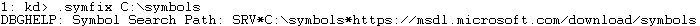 .sympath srv* C:\symbols*https://msdl.microsoft.com/download/symbols위 명령어를 이용해 심볼을 저장할 path를 설정한다.