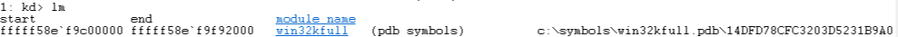 대표적으로 "x /D win32kfull!" 와 같은 명령어가 있다.