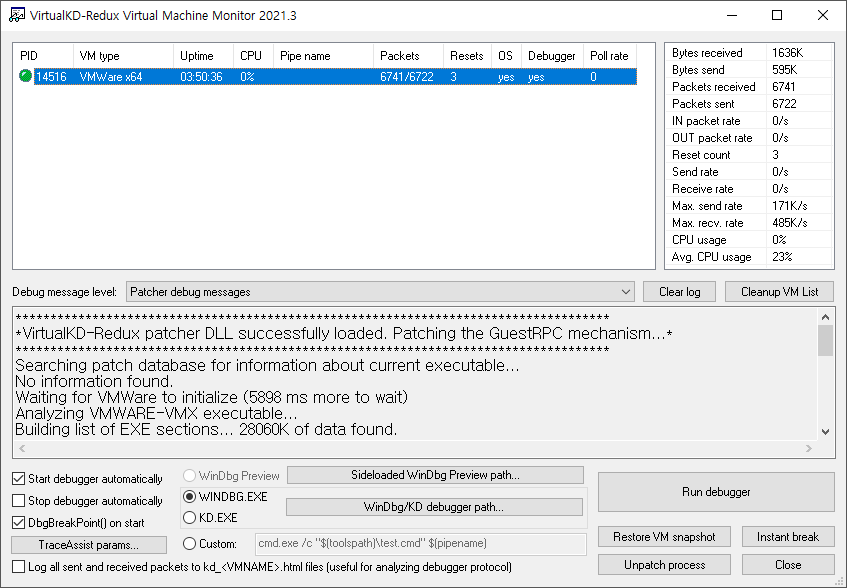 이를 보완해 편하게 디버깅하고자 만들어진 툴이 VirtualKD인데, 러시아 사람이 만든 툴로 매우 빠르다.