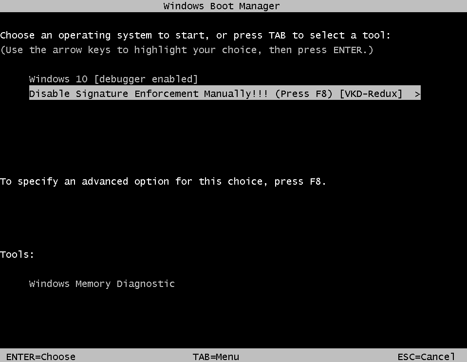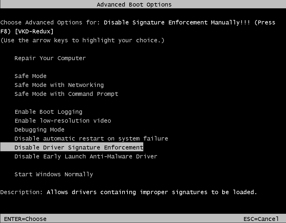 Disable Driver Signature Enforcement를 선택하면 Guest에서의 설정은 끝이다.