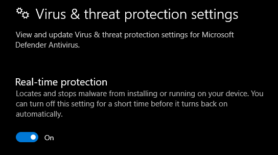 이후에 직접 Defender를 켜서 Real-time protection이 켜져있는지 확인하고, 켜져있다면 끄면 다시 안켜진다. 재부팅하면 다시 켜지기 때문에, 재부팅을 한다면 다시 꺼줘야 한다.